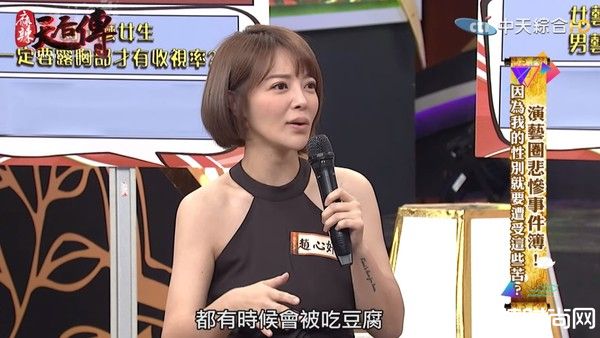 在《麻辣天后传》19日播出内容中,节目以演艺圈悲惨事件簿!因为我的性别就要遭受这些苦?为题,探讨男、女星在工作上遇到的不平等待遇。其中,赵心姸透露,过去每次出外景,都必须穿比基尼,有时还会被要求要露点,因为我们可能要玩水上,他们希望妳摔下去的时候,虽然妳有贴胸贴,可是如果妳可以走光,他们就会觉得这一集收视率有到。