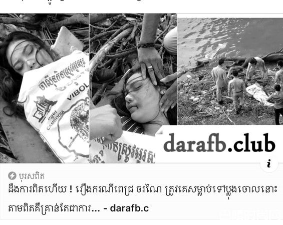 柬埔寨女星Diamond衣衫不整、头发凌乱被发现躺在桥下岸边,当时她衣服被掀开,脸上还有着大大小小的瘀青伤痕,嘴角还渗出血,疑似遭到歹徒性侵杀害,之后又有网路消息传出,有流浪汉试图要猥亵尸体,被路人发现后才将其赶走,并拿着大袋子盖住她的尸体,网路上更流传着一群警察在案发现场勘验的照片。