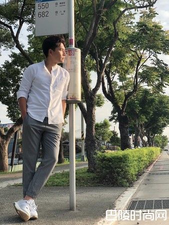 照片中,可以看到王传一身穿白衬衫,随兴折起衣袖露出健康的小麦色肌肤,下半身搭配灰色九分裤和球鞋,一手插口袋,一手撑在立贤路口的公车站牌,天气好出来趴趴走!#捕获野生#要去哪一站?