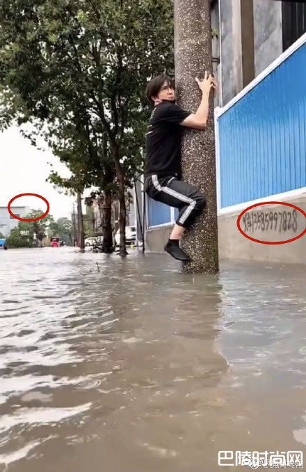 薛之谦在微博分享了自己的一段影片,并标注为通告途中。影片中,地面积水足有半人高,而薛之谦抱着电线杆四处张望,看出来很无助的状态。画面看起来搞笑,再配上薛之谦刻意的惊慌失措的表情,简直像一出精心编排的洪水段子。