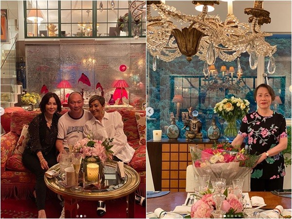 刘嘉玲为妈妈拍照时,连带让豪宅内部曝光,砖红色的沙发上有花朵点缀,餐桌及客厅的灯饰都是选用水晶吊灯,显得富贵又大器,色调及摆设让人像是身处博物馆中,最特别的是,还带着老上海复古的味道。