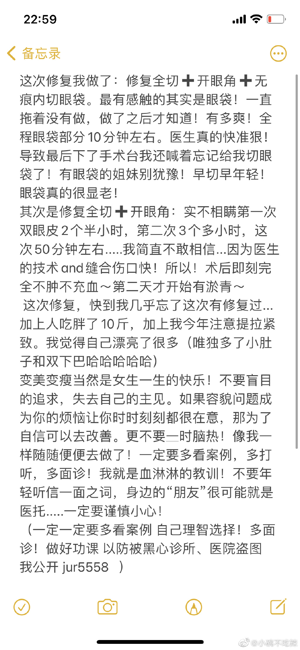 温婉近日在自己的微博小帐发文,透露自己从14岁开始就去做了双眼皮,从此开启整形之路,当时还是她的妈妈主动带她去,原来她从小就因为单眼皮自卑,没想到当时手术失败,为了修复并且让痕迹看起来自然一些,长大后又到韩国做了三次修复手术,眼皮上的疤痕才消失。