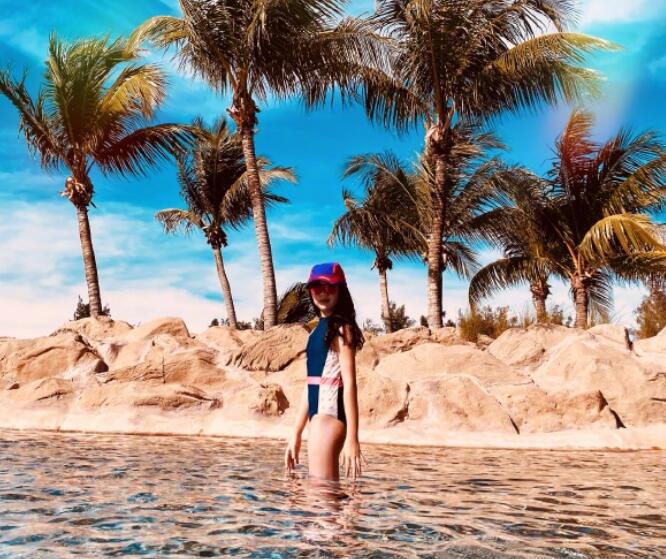 吴尊的儿子Max在照片中,身穿连身泳衣,活泼跳水的模样让人感受到活力十足,反观女儿NeiNei就显得比较文静,她穿着中空泳衣站在水池中,配戴着墨镜跟帽子,在美景中回头看着镜头拍下了美照,让不少网友们看了都以为她是在拍什么时候大片呢!