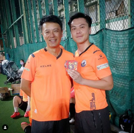 莫家淦25日于Instagram更新一张照片,可以看见与他合照的就是李克勤。可能因为刚踢完球眼神有些无神,但笑容完全没有改变,不过今年53岁的李克勤发际线有变高一点,眼周附近的细纹也变得明显,不过固定的运动习惯让他维持健康体态。