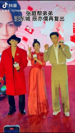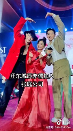 不仅如此,汪东城与辰亦儒也与张庭合体现身,欢庆两人正式加盟公司,只见张庭穿着一身红色长洋装站在中间,汪东城则换上大红色外套搭配一身黑色劲装,辰亦儒则穿着卡其色的特殊造型西装,三人在红毯上开心热舞,接受两旁的员工祝福与庆祝。