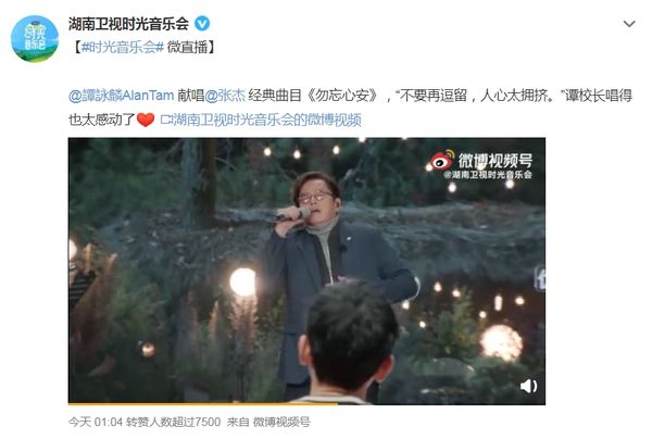 然而《时光音乐会》按照日程播出,谭咏麟画面仍旧曝光,并且翻唱张杰的歌曲《勿忘心安》,湖南卫视官方微博也上传他演唱的画面。众多网友涌入留言心疼校长,永远支持校长、校长唱得真好听、这歌也太应景了!张杰你是语言师吗?校长受委屈了。