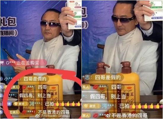 直播过程中,直播主全程没有说话在旁默默滑着手机,以防声音破攻,只有一旁女助理卖力疯狂推销牙膏,还喊话:喜欢四哥、支持四哥的,可以去购物车里下单!但眼尖的网友早已看穿他的虚假模样,并在直播底下留言提醒其它观众,假四哥、这不是香港的四哥别上当。