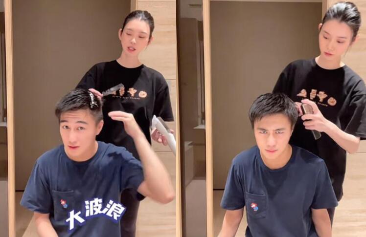 影片中能看到夫妻俩在超大豪华浴室打情骂俏,何猷君坐在镜子前,奚梦瑶则在他身后操刀,老婆在他头发上喷水时,何猷君还紧张到左闪右躲,直到奚梦瑶动怒才乖乖坐好,最后他们也顺利完成剪发任务,夫妻俩的甜蜜互动曝光闪瞎一票网友。
