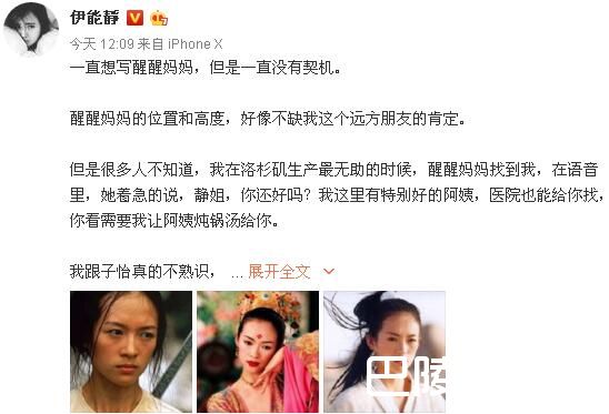 1月16日,伊能静发长文表白章子怡,她坦言自己与章子怡并不熟悉,唯一的联系是她是秦昊的同学。但是章子怡却在她在洛杉矶待产最无助的时候,主动提出要帮忙介绍阿姨和医院,并且经常给她发语音关心她。
