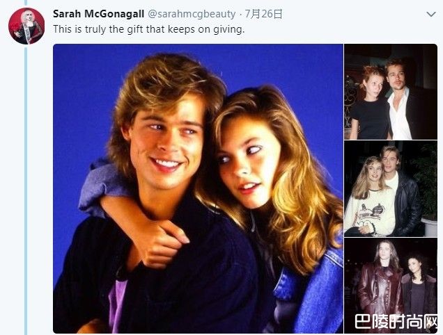 照片里也包括《闪灵杀手》茱莉叶路易丝(Juliette Lewis)、Jitka Pohledek、《禁入校园》吉儿修伦(Jill Schoelen)等人。只见布拉特皮特的发型从黑色、棕色到金色,短发到长发,出席活动时服装似乎都会和女伴搭配,造型多变,便有网友开玩笑,这是宠爱女友的表现,直夸帅气的他不管什么造型都能驾驭。