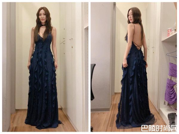 Blumarine蕾丝雪纺洋装是2018秋冬系列作品,温贞菱走得很前面,7月才刚推出就已经上身,不过从模特儿走秀时可以发现原本的设计,下半身是通透的蕾丝,火辣程度非一般人能驾驭,实际穿上,一定要加衬里大家才安心。