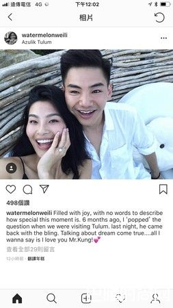 两人交往两年半,台湾时间30日早上,孔令奇在IG写下,lucky me,而女友IG则是写下,Filled with joy, with no words to describe how special this moment is. 6 months ago, I ‘popped’ the question when we were visiting Tulum. last night, he came back with the bling. Talking about dream come true....all I wanna say is I love you Mr.Kung!女友发文,表示自己昨天男友孔令奇拿出戒指,自己真的太幸福了!发文一出,羡煞众人,也获得好友们祝福。