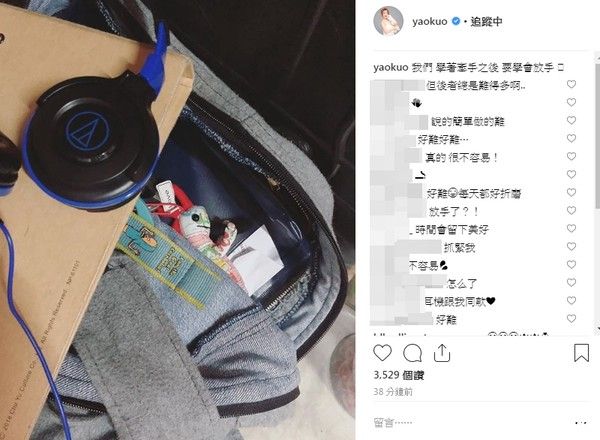 郭书瑶24日在IG抒发心情,写道:我们,学着牵手之后,要学会放手。还PO出包包内东西都散落出来的照片,疑似话中有话,却让不少粉丝联想到是不是和以纶之前情变。