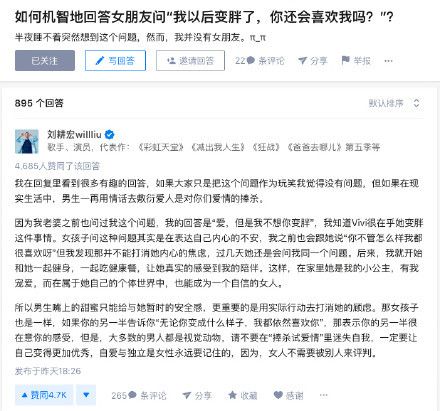 而刘耕宏更表示:男人嘴上的甜蜜,只能给女友暂时的安全感。并认为实际行动才是最重要的,网友看了纷纷大赞:刘耕宏这个回答一百分,果然是完美好男人、得让男朋友们多看看这个、标准答案、希望我男友也有这样的觉悟。