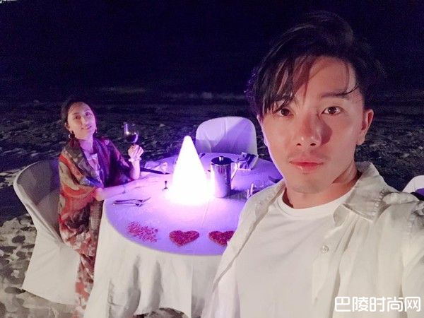 照片越往左滑,闪度越高!坤达和柯佳嬿站在海洋前,夕阳余晖照映下,小俩口深情凝视彼此,嘴角带有一丝笑意,没有过多亲密互动,却能感受到夫妻俩静谧的幸福,不只这样,两人直接在沙滩烛光晚餐,桌上摆着两颗大爱心,穿着罩衫的老婆举起酒杯,由他掌镜自拍下这宝贵的一刻。