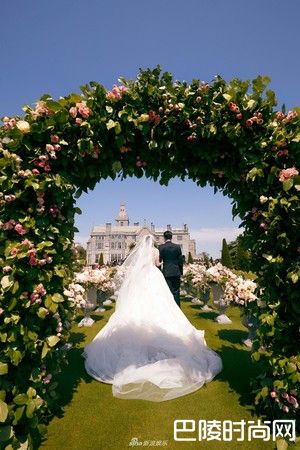 婚礼现场除了用鲜花搭成拱门之外,两侧也放上白色、粉色鲜花,排列出一条幸福之路,前方是具有欧洲风情的古堡,唐艺昕挽着张若昀朝前方迈进,就像王子与公主,携手共赴人生新页章。