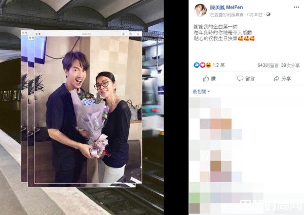 有台湾最美丽欧巴桑之称的陈美凤1日迎来63岁生日,可以看到她扎起头发、戴上圆框眼镜,身穿微透肤U型挖空的黑上衣,休闲又不失明星风采,站在穿得一身黑的言承旭旁边,灿笑捧着鲜花入镜,每年此时的你总是令人感动,贴心地祝我生日快乐。