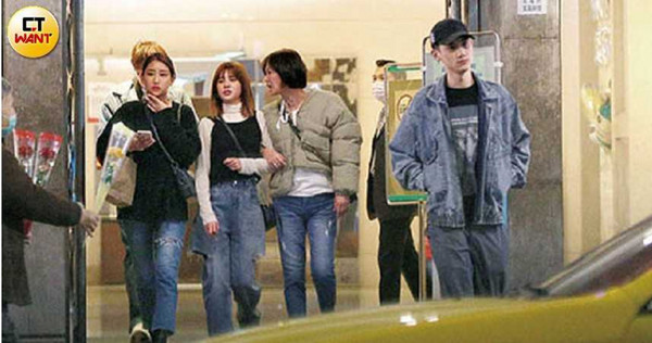 2月19日当晚,本刊在直击宇宙人主唱林忠谕(小玉)和网红女友胡尹霏(卡卡)约会之际,同场列席的除了卡卡妈,卡卡的弟弟Josh也带着女友宇珊,一同为老妈祝寿。晚间近9点,五人享用完铁板烧后转往KTV续摊,宇珊与Josh这一对手着牵手,抢在前头带路,过斑马线时也舍不得放手,期间还不时回头和后头的小玉、卡卡及卡卡妈聊天。讲到开心之处,宇珊完全不矫揉造作地张嘴大笑,看来五人已相当熟悉彼此,关系绝非一般。