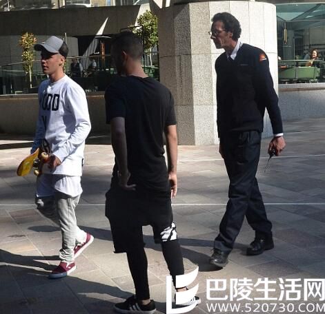 当然,比伯玩滑板时,还是吸引了众多的目光,很多粉丝还拿出手机拍照。 比伯玩滑板的动作也非常娴熟,但是他似乎选错了玩的地方。很显然,当警卫拿出对讲机请求支援时,比伯也难掩自己的不满,试图辩解。 最终,比伯不得不抱着黑色的滑板,跟友人一起步行离开了。 安全局的女发言人之后也接受了《每日邮报》的采访,她说:“我们主要为了保障最广大社区客户的安全。” “每一个人都必须入乡随俗,遵守当地的规章制度,我们在执行公务时,会一视同仁。” 当天,比伯穿了一件宽松的T恤,一条褪色的牛仔裤,虽然帽子压得很低,但是眼尖的粉丝还是一眼认出了他。很多粉丝都拿出手机不停的拍他,但是比伯依旧专心的玩滑板。