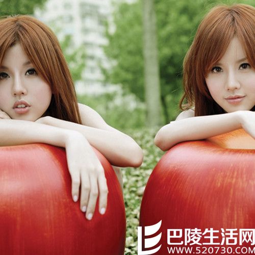 这是一张by2的一张高清的壁纸,可以说在很多by2的粉丝中肯定有人用这张照片来当做她们的壁纸。两个人长的一模一样,都是栗色的头发,并且还是一样的中分发型,加上她们白皙的皮肤,让人看起来觉得非常的漂亮。再加上她们分别趴在一个大苹果上面,苹果的红色与她们肤色形成鲜明对比,更是显得by2她们秀色可餐哦。