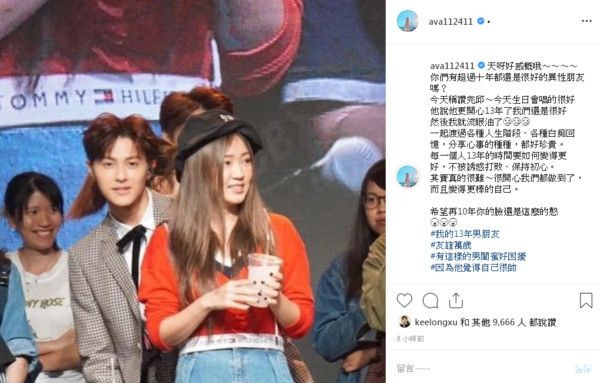 丫头对这段友谊的珍惜表露无疑外,还是忍不住亏希望再10年你的脸还是这么的憨,最后写上HASHTAG我的13年男朋友、友谊万岁、有这样的男闺蜜好困扰、因为他觉得自己很帅。当天有道场的粉丝也跟着分享,坐在台下看你们互动,好激动、真的很开心我爱的你们都这么好感情。