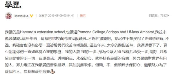 歌手范玮琪9日发文反击网友,公开学历是哈佛延伸教育学院及波莫纳学院,强调并未造假,她过去总给人好脾气的印象,这次难得硬起来,让很多网友感到意外,而老公黑人则说,身为公众人物难免被误解,说清楚就好。