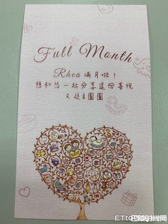 如今小宝宝满月,赵又廷夫妻俩也开始发送满月宴邀请函和礼盒分享喜悦,蛋糕以及卡片上都写着女儿的英文名字Rhea,而整个礼盒的设计都以粉红色为主,上面有一棵用藤蔓及宝宝玩具等组成的爱心树,而里面所附赠的卡片写着:Rhea满月啦!想和你一起分享这份喜悦。