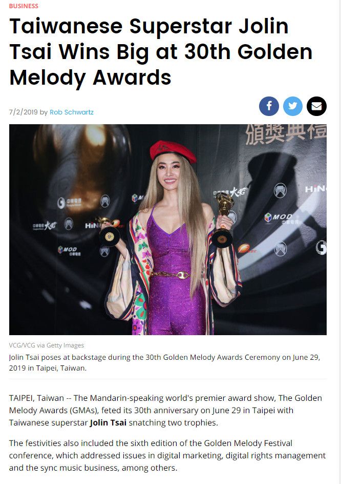 蔡依林其实不是第一次登上美国Billboard告示牌官网,这次在金曲奖后,再度受到关注,官网以台湾巨星蔡依林是第30届金曲奖的大赢家为标题报导,文内不只介绍金曲奖,更报导Jolin以《玫瑰少年》夺下年度歌曲、专辑《Ugly Beauty》荣获年度专辑。