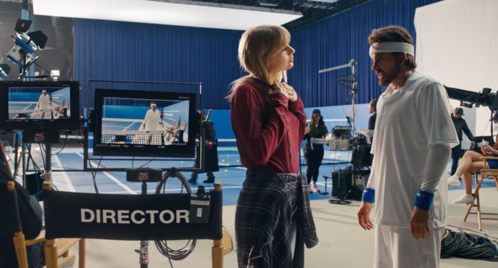 镜头转换到运动场上,大老板来参加一场为女性发声的慈善网球比赛,但大家都知道,男主的目的不过是想要藉由慈善活动来换取更好的名声。泰勒丝的爸爸也惊喜现身,担任网球裁判,没想到在判决男主犯规后,他气得直接把网球拍打烂,还向裁判丢网球,这让一旁的工作人员Loren Gray(抖音网红,目前在抖音平台上拥有最多追踪者)看得直翻白眼。