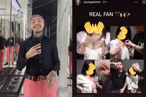 根据当地媒体《posttoday.com》报导,从YOUNGOHM的个人社群媒体帐号上看到,他上传一则附有4格照片的限时动态,同时在上头写着真正的粉丝,照片内容是一名身穿白色上衣、留有短发的女子,大方将胸前衣服拉开并露出黑色内衣,要求YOUNGOHM在裸露肌肤上签名的样子;只见YOUNGOHM在签完名之后,还亲昵的勾住女粉丝的脖子合照。