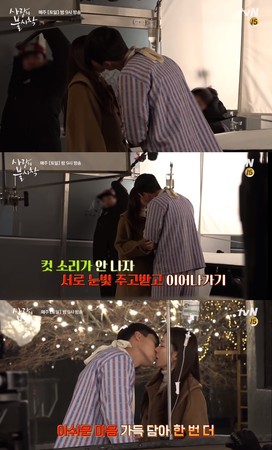 tvN DRAMA曾在官方频道曝光《爱的迫降》花絮,其中最受到瞩目的就是玄彬和孙艺真的吻戏,男方亲上女方后再次挺起身子,但因为还没有听到导演喊cut,2人都没有出戏、继续维持着深情哀切的眼神,又默契地再次凑上脸亲第二次。
