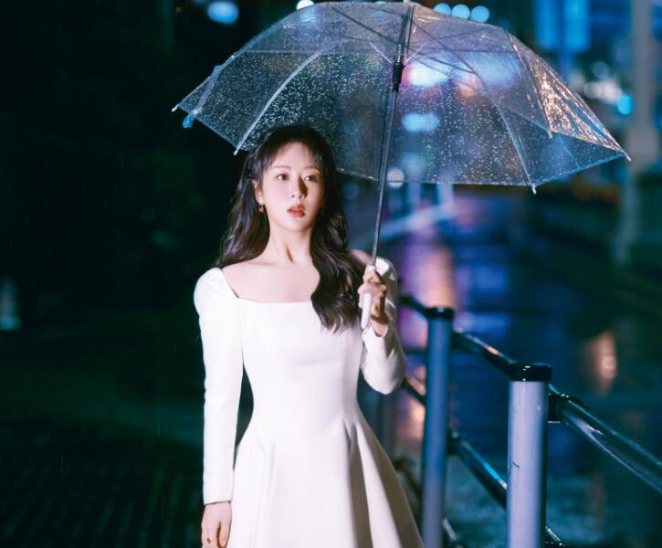 杨紫清新形象深受粉丝喜爱,日前她穿着泰国品牌POEM白色礼服,衬托她的白皙肌肤,裙装则以颇具宫廷风格的方领剪裁,搭配蓬蓬袖设计,为上半身注入丰盈感,杨紫索性上演雨中大片,试图演绎梦幻氛围。
