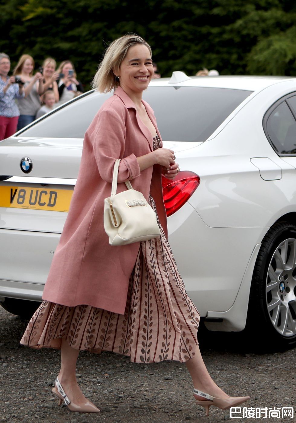 近日刚结束所有 《冰与火之歌》角色戏分的龙后Emilia Clarke,以俏丽短发与粉色系裙装出席。