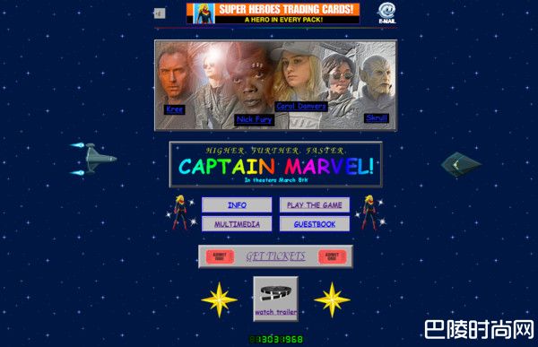 综合外电报导,这个网站乍看之下会以为是恶搞的网站,但它货真价实就是《惊奇队长》的官网。这次《惊奇队长》的官网完整重现90年代网路的风格,不管是低画质的GIF档、复古的按钮造型、虚拟留言簿或怪异的弹出动画,在在都勾起了许多影迷的回忆。