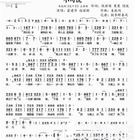 《不可说》是由麦振鸿作曲,钱丽婧、fresh果果、饶俊作词、麦振鸿、吴清华编曲,霍建华、赵丽颖演唱的歌曲。禅意的歌词伴着二人动情的演唱,如白描般勾勒出这一段凄美绝伦、奋不顾身的旷世奇缘。该歌曲是2015年电视剧《花千骨》的片尾曲,已于2015年5月25日发布,引发观众一阵热议。创作背景:慈文传媒集团出品,唐丽君担任制片人,导演林玉芬、高林豹执导,霍建华、赵丽颖等超强阵容联袂出演的传奇仙侠大剧《花千骨》于2015年6月9日晚22点登陆湖南卫视钻石独播剧场。2015年5月25日,该剧曝光片尾曲《不可说》MV,霍建华、赵丽颖首度联袂献声。歌曲鉴赏:主题曲《不可说》由“仙侠音乐之父”麦振鸿作曲,独特而虐心的曲风延续了其后浪漫主义的音乐情怀,为电视剧《花千骨》更添神韵。曾作为签约歌手的霍建华声音深情沉稳,而在《陆贞传奇》中与陈晓合唱《心情》的赵丽颖声音空灵柔美,二人的默契合作令主题曲《不可说》迸发出别样的韵味。