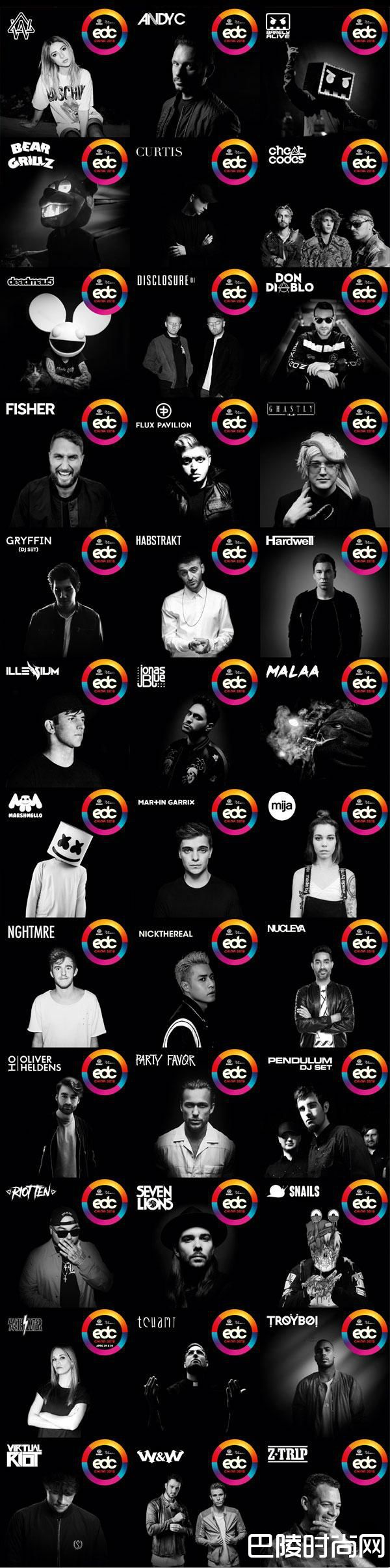 Andy C、 Bassrush Experience、Bear Grillz、Cheat Codes、Curtis、Deadmau5、DJWellman、DJ Yaksa、Don Diablo、Ghastly、Giftback、Goldfish &Blink、Habstrakt、Illenium、Jayceeoh、Jonas Blue、Kaku、Malaa、Marshmello、MartinGarrix、Mija、NGHTMRE、Nickthereal、RaveRepublic、Soothslayer、Stan、TroyBoi、Warz、Z-Trip