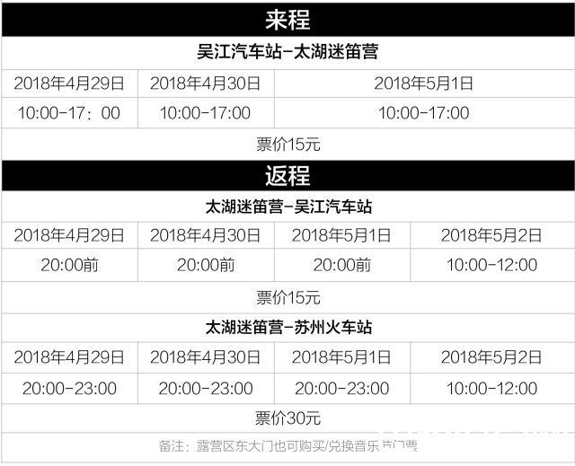 票价:往返吴江汽车站-太湖迷笛营15元,太湖迷笛营返回苏州火车站30元