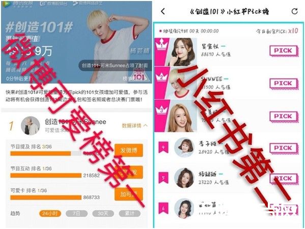 粉丝为了让支持的练习生能顺利出道不惜集资砸钱,在订制会员卡部分,粉丝列出的排名Sunnee是第4名、李子璇第7,而微博互动排行部分,Sunnee在第3名,李子璇在第5名,可爱能量榜中,Sunnee更是排名第1,李子璇也在前5名,其他的排行榜上两人成绩一样也是在前5名,就连集资金额,Sunnee也仅输吴宣仪、孟美岐,然而每天中午综合排名公布时,两人始终挤不进前10。