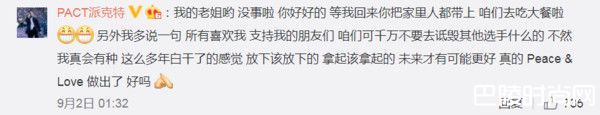 派克特的姐姐接着表示,弟弟从未放弃对音乐的初衷,可在《新说唱》的比赛中,一味吹捧的都是什么!对,他不是最偶像的,不是人气最高的,不靠话题炒作,但他的音乐才华和天赋无人能比。在如此残酷的比赛中,弟弟为了顾全大局,宁愿帮其他选手伴奏,即便表现机会减少也在所不惜,但结果实在太令她失望。