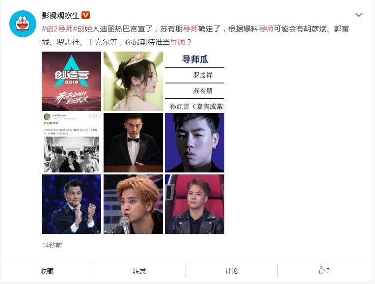 演艺圈近期吹起选秀风潮,继《以团之名》、《青春有你》后,又要推出选秀节目《创造营2019》,且该节目就是《创造101》第二季,这次以征选男团重新出发,发起人找来迪丽热巴,更爆出导师阵容有苏有朋,在网路上掀起热议。