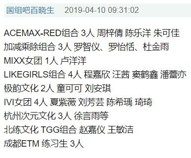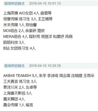大陆网友10日在豆瓣论坛爆料,宣称《青春有你》女生版名单曝光,除了各大经纪公司练习生之外,也有已出道的蜜蜂少女队孔雪儿、刘雨昕、张悠然、许和琪,优我女团马蜀君、宋芳园、魏冰雪、乐靓,AKB48 TEAMSH朱苓、李诗琦、周念琪、庄晓媞、王雨朵等人,甚至出现《Produce 48》参赛者、刚以韩团Everglow一员出道的王怡人。